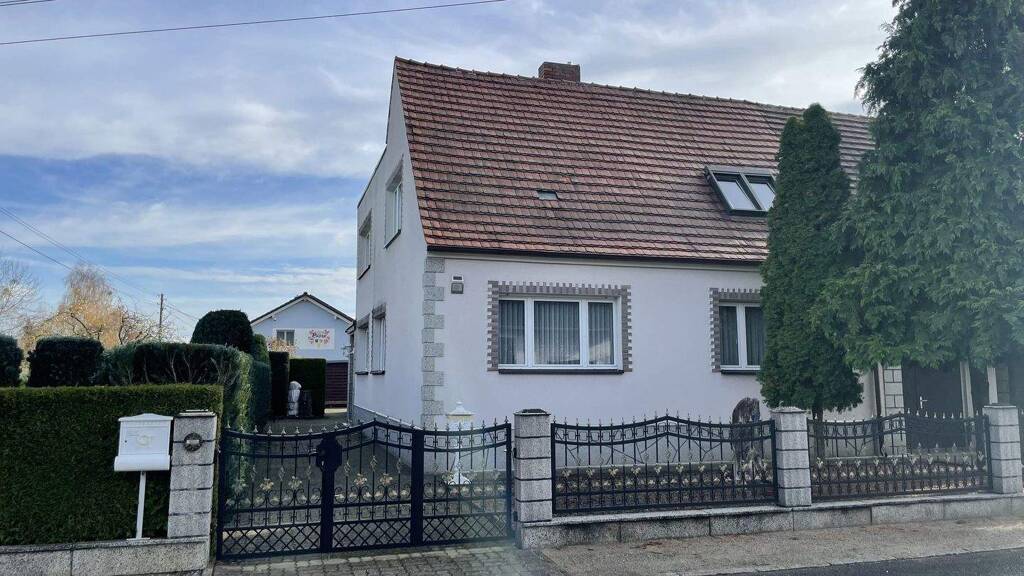 Dieses massiv erbaute Einfamilienhaus bietet mit einer Wohnfläche von ca. 141 m² und insgesamt 6 Zimmern viel Raum für eine vielseitige Nutzung. Drei Schlafzimmer und zwei Badezimmer sowie ein Gäste-WC sorgen für komfortables Wohnen - ideal auch für größere Familien. Das Haus ist voll unterkellert und wird mit einer Gasheizung aus dem Jahr 2014 beheizt. Insgesamt befindet sich die Immobilie in einem soliden, jedoch modernisierungsbedürftigen Zustand, sodass Sie Ihre eigenen Vorstellungen problemlos umsetzen können. Das großzügige Grundstück mit ca. 911 m² überzeugt mit einem gepflegten Garten und ist vollständig erschlossen: Strom, Gas, Wasser, Abwasserkanal - alles vorhanden. Zudem gibt es einen Brunnen, welcher den Garten komfortabel mit Wasser versorgt. Praktisch für Hobby, Fahrzeuge oder Lagerfläche: Auf dem Grundstück befinden sich zwei Schuppen sowie vier Garagen. Ein Haus mit viel Platz, guter Substanz und großem Potenzial - ideal für Familien, die Wert auf Freiraum und individuelle Gestaltungsmöglichkeiten legen.