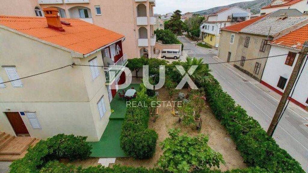 In einer der attraktivsten und ruhigsten Lagen der Stadt Pag, in der zweiten Reihe vom Meer gelegen, stellt dieses Einfamilienhaus, umgeben von zwei mediterranen Gärten, eine Oase der Ruhe dar, die auf einem 685 m2 großen Grundstück errichtet wurde . Es liegt in der Nähe von schönen Stränden, dem Stadtzentrum (150 m) und allen Annehmlichkeiten, die zum Leben notwendig sind. Der schöne Garten, in dem Sie ungehindert die Sonnenstrahlen genießen können, ist eine Kombination aus einheimischen Pflanzen und unberührter Natur und ein Ort der ganztägigen Entspannung mit Blick auf eine gepflegte Rasenfläche mit Agaven, bunten Oleander, hinreißenden Palmen Bäume und anmutige Olivenbäume.
