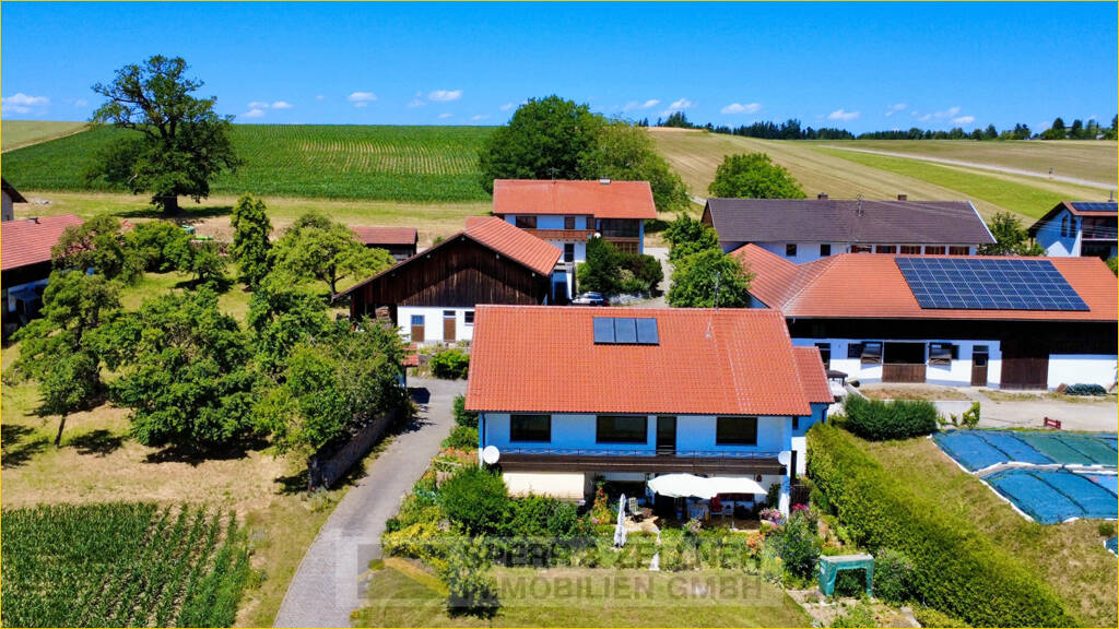 Zum Verkauf steht ein einmaliges Anwesen in Berg, Gemeinde Kirchdorf. Das Anwesen umfasst ein Zweifamilienhaus aus dem Jahr 1972 mit ca. 210 m² sowie ein Zweifamilienhaus aus dem Jahr 1997 mit ca. 247 m² Wohnfläche. Zur Hofstelle gehört neben den zwei Zweifamilienhäusern auch eine große Garage bzw. Lagerhalle. Die Hofstelle mit Grünland beläuft sich insgesamt auf ca. 19.203 m². Schräg gegenüber befindet sich ein Bauplatz mit ca. 1.069 m² mit angrenzendem Grünland mit ca. 17.904 m². Eine Bauvoranfrage ist hierfür gestellt.
