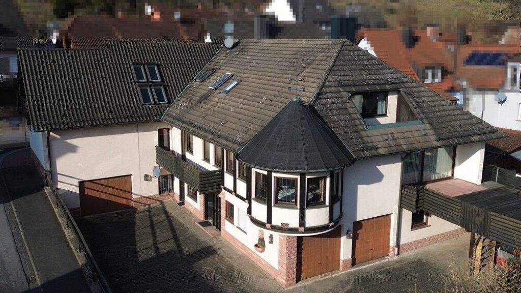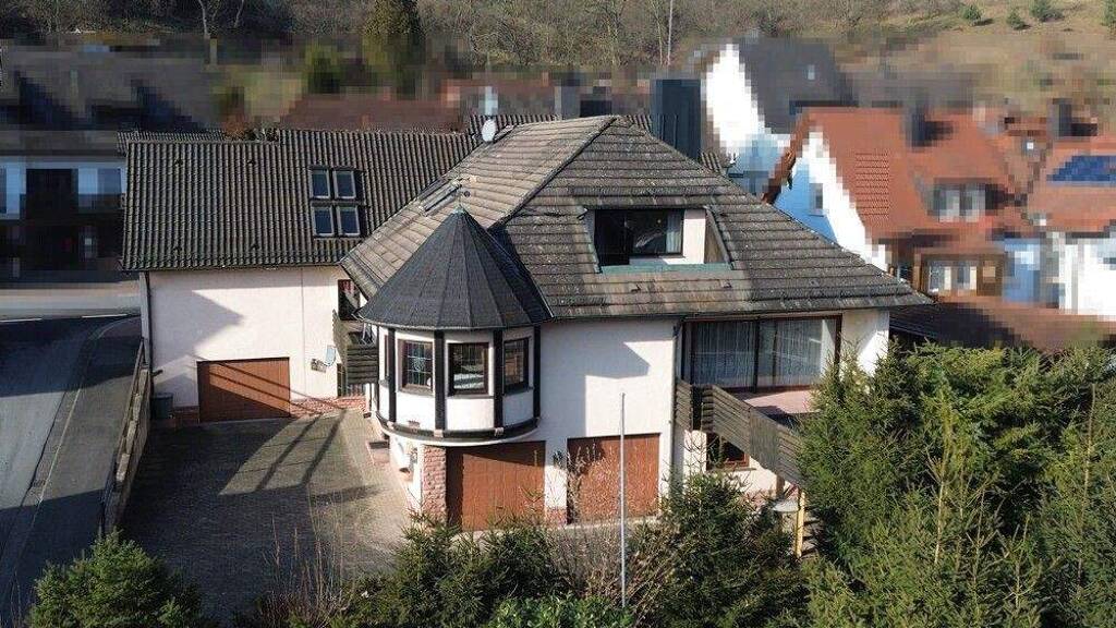 Heute präsentiert sich diese Immobilie als großzügiges Wohnanwesen mit Gewerbeeinheit im Stil der 80er Jahre. Das ursprünglich 1955 als Einfamilienhaus errichtete Anwesen wurde 1978 durch einen großzügigen Anbau vergrößert. Im Jahre 1960 wurde eine Garage und ein Balkon errichtet, später 1969 ist das Haus um ein Ladengeschäft erweitert worden.