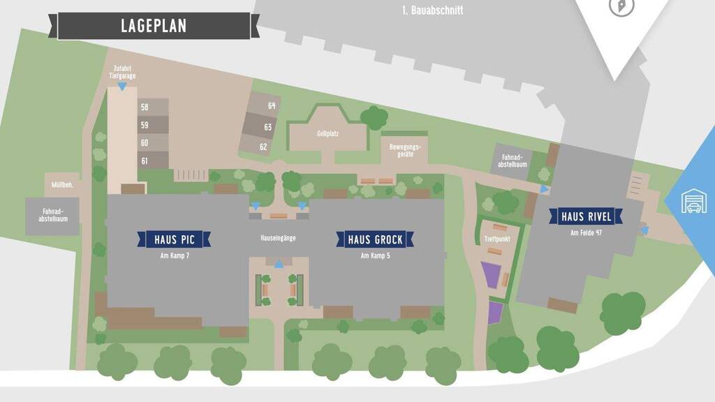 Unser Projekt "Alter Zirkusplatz 2" ist fertiggestellt! Es sind drei Häuser, benannt nach den berühmten Clowns "Pic", "Grock" und "Rivel", mit insgesamt 29 seniorengerechten Wohnungen entstanden. Den zukünftigen Bewohnern steht ein Gemeinschaftsraum sowie eine Tiefgarage zur Verfügung. Außerdem befindet sich eine Tagespflege im Haus.