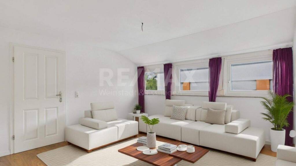 Heute stehen rund 96 m² Wohnfläche zur Verfügung, verteilt auf fünf gut geschnittene Zimmer. Der großzügige Wohn- und Essbereich mit zwei großen Dachflächenfenstern bildet das Herzstück der Wohnung und bietet ein offenes, lichtdurchflutetes Wohnambiente. Zwei vollständig ausgestattete Badezimmer sorgen für Komfort im Alltag, während der Balkon zusätzlichen Außenraum mit schönem Ausblick bietet.