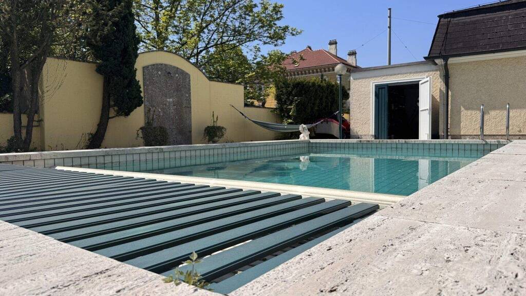 Lassen Sie sich von der einladenden Terrasse verzaubern, die zu entspannten Stunden im Freien einlädt. Hier können Sie die warmen Sonnenstrahlen genießen oder gemütliche Abende mit Familie und Freunden verbringen. Für die nötige Abkühlung im Sommer sorgt die beheizbare Poolanlage.