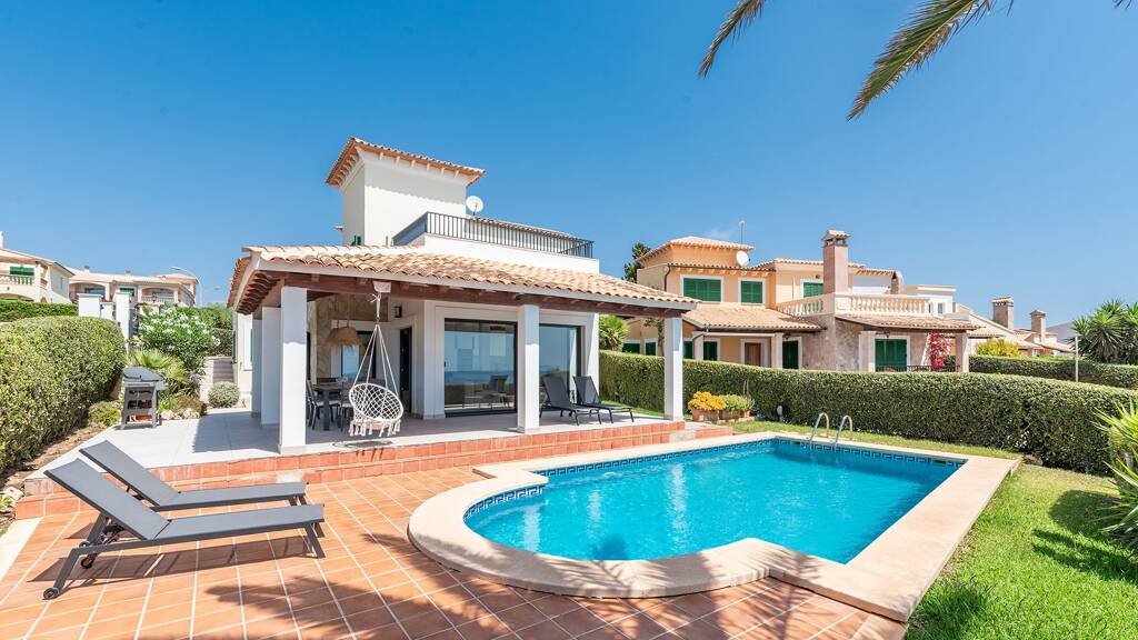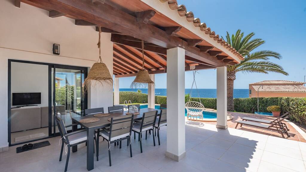 Der Außenbereich des Hauses ist ein weiteres Highlight. Der neu geflieste Pool und die großzügige Poolterrasse sind perfekt zum Entspannen und bieten Ihnen einen wunderbaren Ort, um die warme Sonne zu genießen. Der nahegelegene Strand ist in nur fünf Minuten zu Fuß erreichbar, was den Standort besonders attraktiv macht.