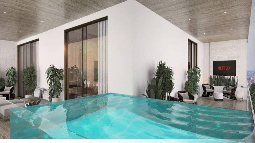 Stilvolle Zwei-Zimmer-Wohnung mit Pool in modernem Design