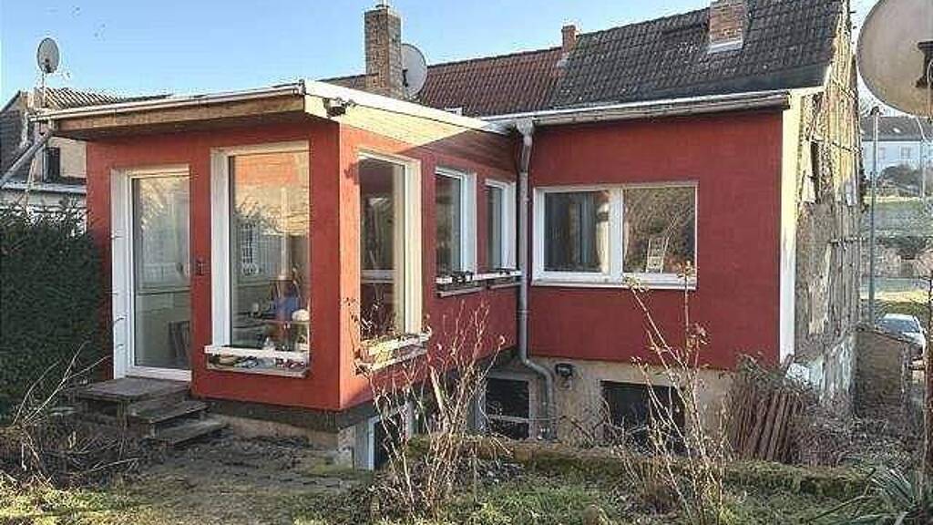 Im Erdgeschoß des Hauses befinden sich die Küche mit einem anschließenden Raum, der als Büro genutzt wurde. Durch den langen Flur betritt man das Bad mit Wanne und Dusche und eine Kammer. Auch der Ausgang zum Hof befindet sich hier. Im Obergeschoß gibt es das geräumige Wohnzimmer mit sich anschließenden hellen Wintergarten. Von hier aus gelangt man in den Garten. Im Obergeschoß befinden sich weiterhin das Schlafzimmer, ein Kinderzimmer und eine Toilette. Das Haus ist teilweise unterkellert.