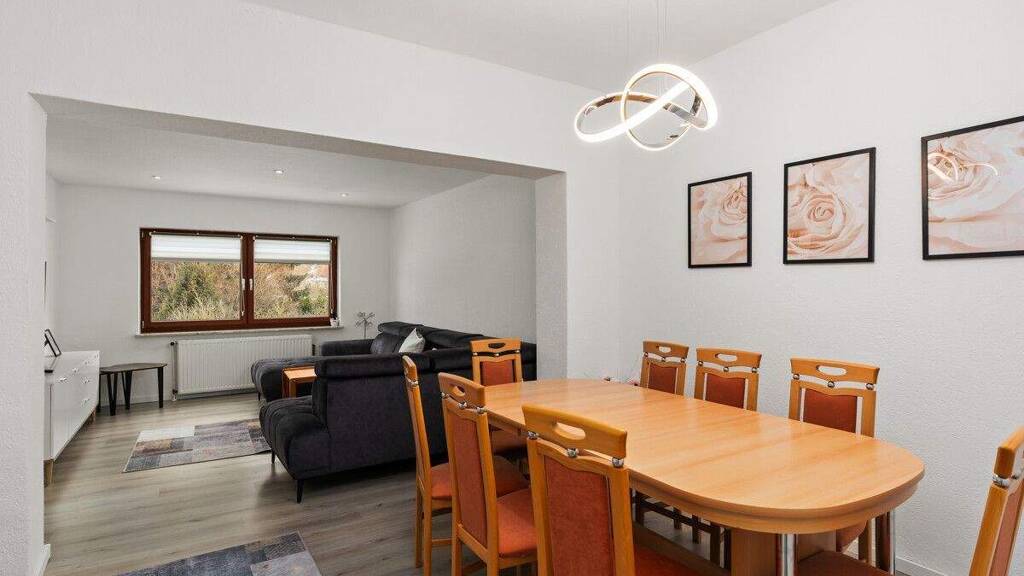 Eine 3-Zimmerwohnung (Wohnung 2) im Erd- und Obergeschoss mit ca. 77,85 m², die entweder selbst bewohnt oder auch vermietet werden kann. Diese Wohnung hat ebenfalls einen eigenen Eingang. Im Erdgeschoss gibt es ein WC, sowie einen Raum mit fast 13 m². Im Obergeschoss gibt es durch die Erweiterung im Jahr 2003 einen großzügigen Wohn-Essbereich mit 25 m². Außerdem befindet sich in dieser Etage eine Küche mit Zugang zur Dachterrasse, ein Badezimmer mit Dusche und ein Schlafzimmer. Im gedämmten Dachgeschoss stehen zwei weitere, voneinander getrennte, Räume zur Verfügung.
