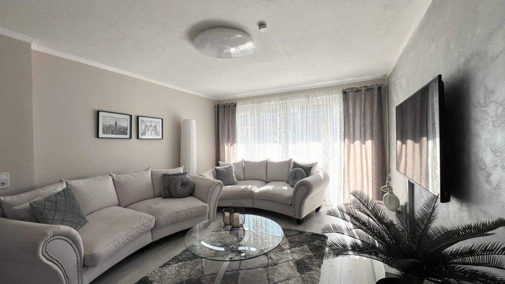 Das helle Wohnzimmer mit direktem Balkonzugang bildet das Herzstück der Wohnung. Die drei weiteren Räume lassen sich individuell als Schlaf-, Arbeits- oder Gästezimmer gestalten. Besonders hervorzuheben ist die moderne Einbauküche - perfekt für geselliges Kochen und Genießen.