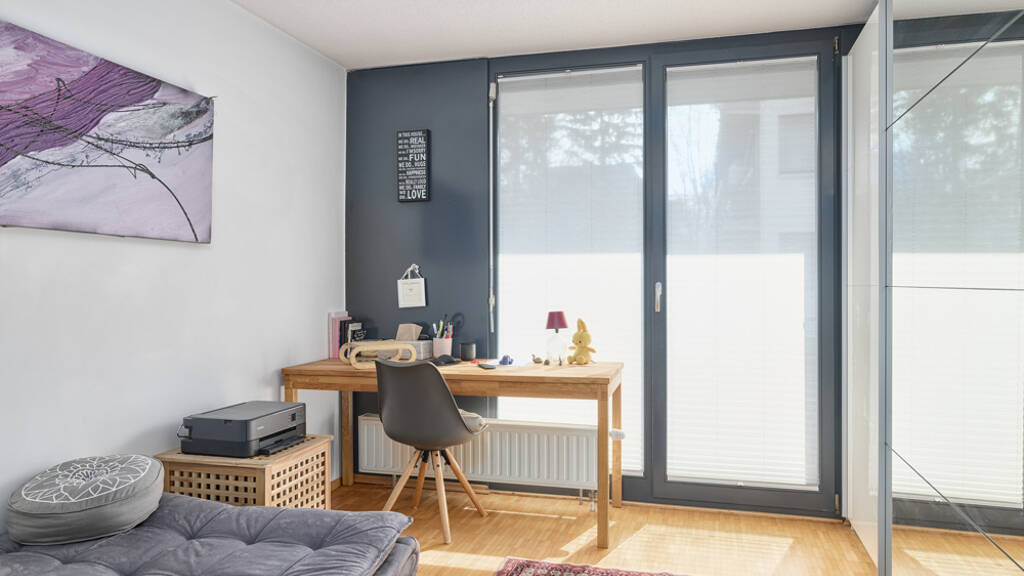 Der Wohn- und Essbereich präsentiert sich freundlich und bildet den zentralen Mittelpunkt der Wohnung. Große Fensterflächen sorgen für viel Tageslicht und eine einladende Atmosphäre.