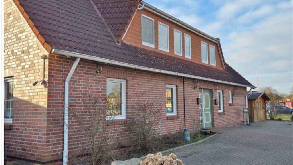 Das gepflegte Wohn- und Geschäftshaus befindet sich im Gewerbegebiet von Hinte.