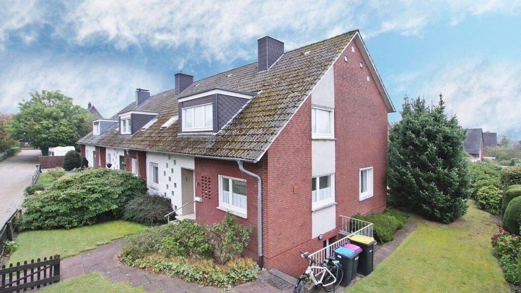 In einem gewachsenen und bevorzugten Wohngebiet erwartet Sie auf einem 562 m² großen Erbbaurechtsgrundstück - mit Nähe zu diversen Schulen, dem Kreishaus und verschiedenen Sportstätten (z.B. dem Freibad) - dieses voll unterkellerte, massiv erstellte Reihenendhaus aus dem Baujahr 1969 und ist schon jetzt für Sie frei. Die Erbpacht bei einer Restlaufzeit bis zum 01.01.2065 beträgt derzeit EUR 873,08 p.a. Die Wohnfläche beträgt insgesamt ca. 122,34 m². Im Erdgeschoss erwartet Sie die breite Eingangsdiele, ein zentraler Flur, Gäste-WC, Küche, ein großes Ess- und Wohnzimmer und ein weiteres Zimmer.