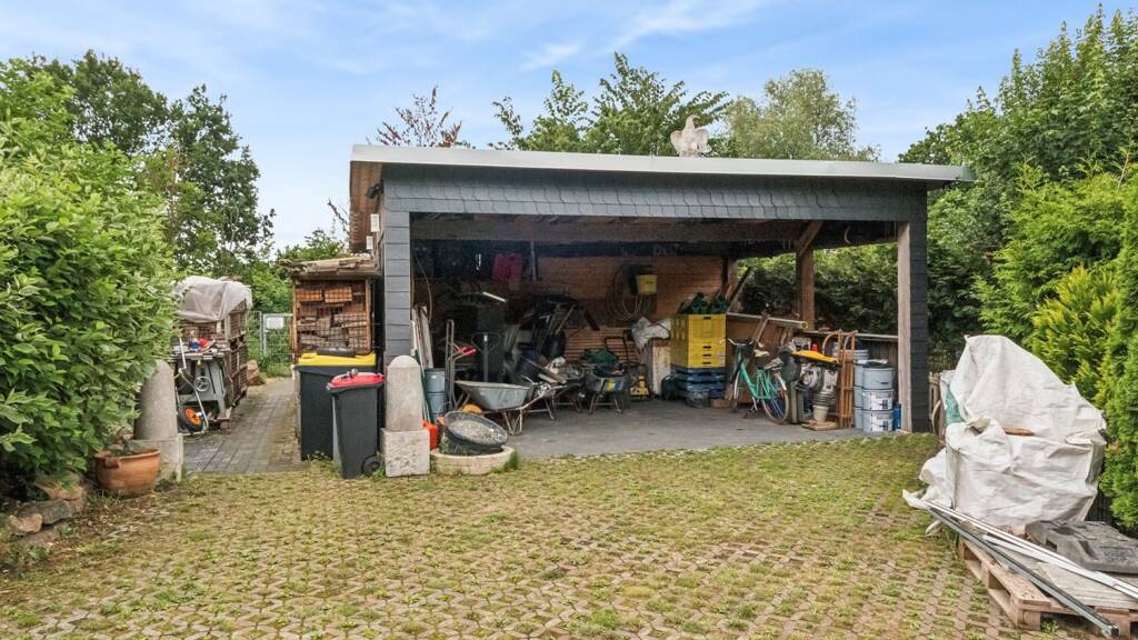 Aktuell sind neben dem Haus eine große gepflasterte Fläche und ein Carport vorhanden. Diese Fläche wäre bei Bedarf aber auch als weiteres Baugrundstück nutzbar oder separat veräußerbar.