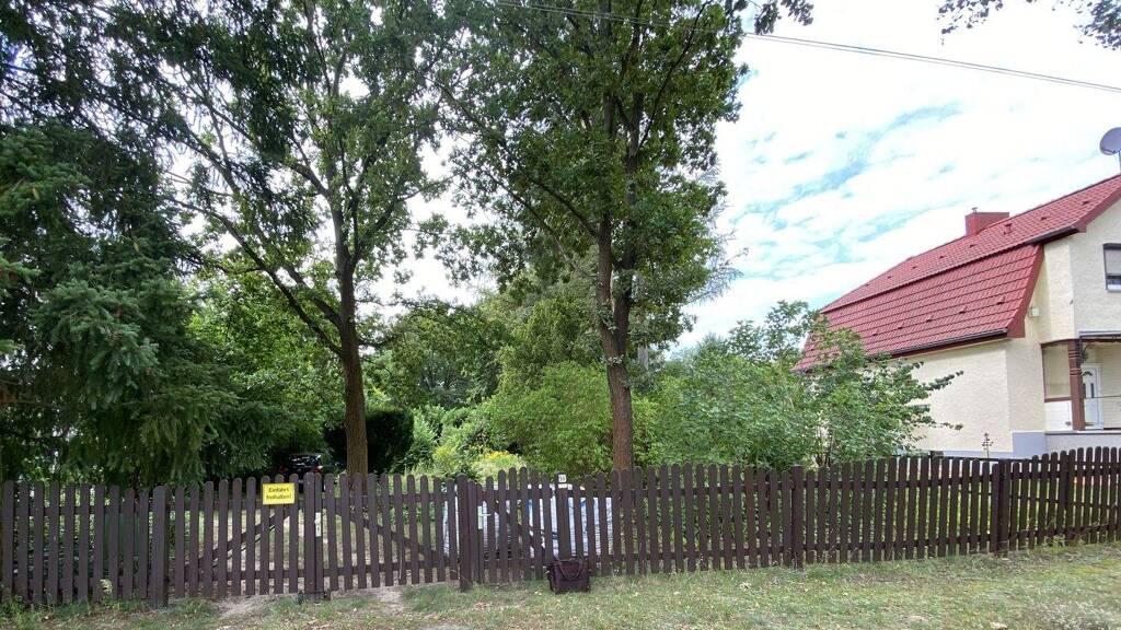 Der Zuschnitt des Grundstückes ist leicht unregelmäßig, unsymmetrisch und trapezförmiger Gestalt. Die Straßenfront beträgt ca. 19,7 und die mittlere Tiefe senkrecht zur Straßenfront gemessen ca. 67,5 Metern. Das Grundstück wurde bis 31.12.2024 zu Wochenend- und Erholungszwecken genutzt, die vorhandenen Altbauten wurden vom ehemaligen Pächter entfernt.