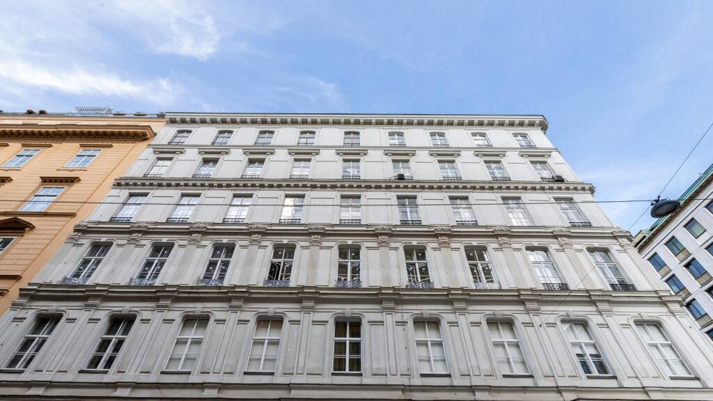 Zum Verkauf gelangt eine unbefristet vermietete Altbauwohnung mit ca. 109,4 m² Wohnfläche in absoluter Top-Lage des 1. Bezirks in der Operngasse, nur wenige Schritte von der Staatsoper entfernt. Gelegen ist die Wohnung im letzten Regelgeschoss (5. Stock mit Lift) eines imposanten Eckzinshauses aus 1870 mit elegant gegliederter Straßenfassade, wobei das Dachgeschoss bereits ausgebaut wurde. Ausgerichtet ist die Wohnung südwestlich Richtung Elisabethstraße. Die Wohnung befindet sich in einem durch die langjährige Vermietung entsprechend abgenutzten Zustand. Das unbefristete Mietverhältnis mit dem im Jahr 1939 geborenen Mieter besteht seit Dezember 1969. Absolutes Asset der Wohnung ist das potenzielle Wertsteigerungspotenzial bei Freiwerden der Wohnung.