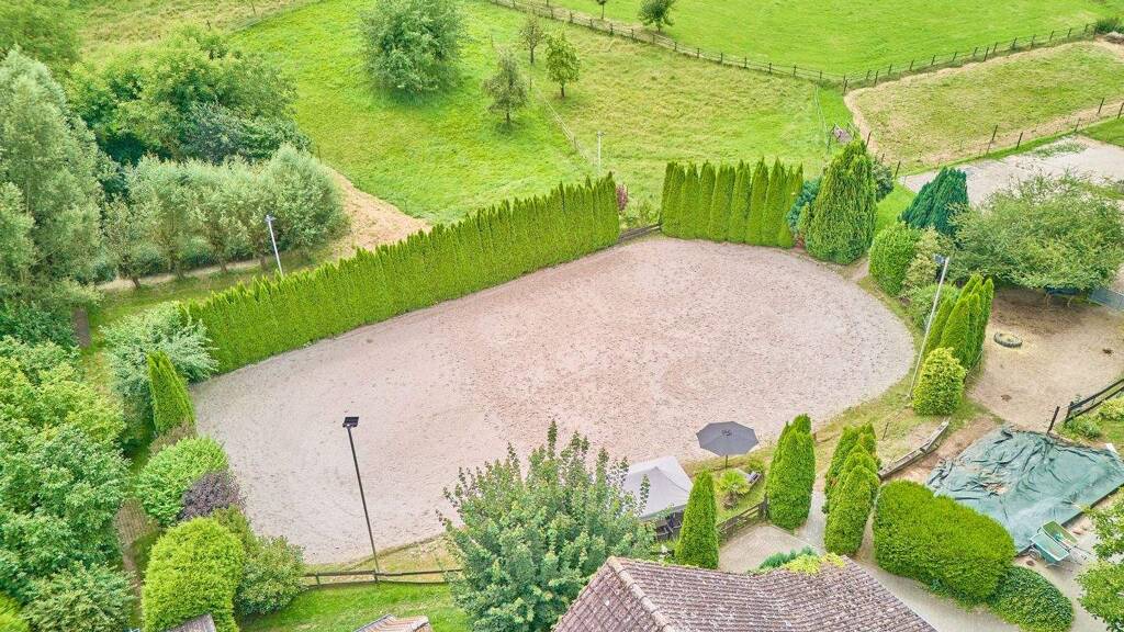 Die Hofanlage bietet ideale Voraussetzungen für die private Pferdehaltung: Ein Reitplatz mit den Maßen 19 × 48?Meter, ausgestattet mit Flutlichtanlage und massiver Umzäunung, ermöglicht flexibles Training. Für Ihre Pferde stehen fünf großzügige, helle Boxen mit beheizbaren Tränken, sehr große Paddockflächen mit Offenställen sowie angrenzende Weideflächen zur Verfügung. Das Scheunengebäude bietet nicht nur Platz für Heu- und Strohlagerung, sondern auch eine beheizte Sattelkammer.