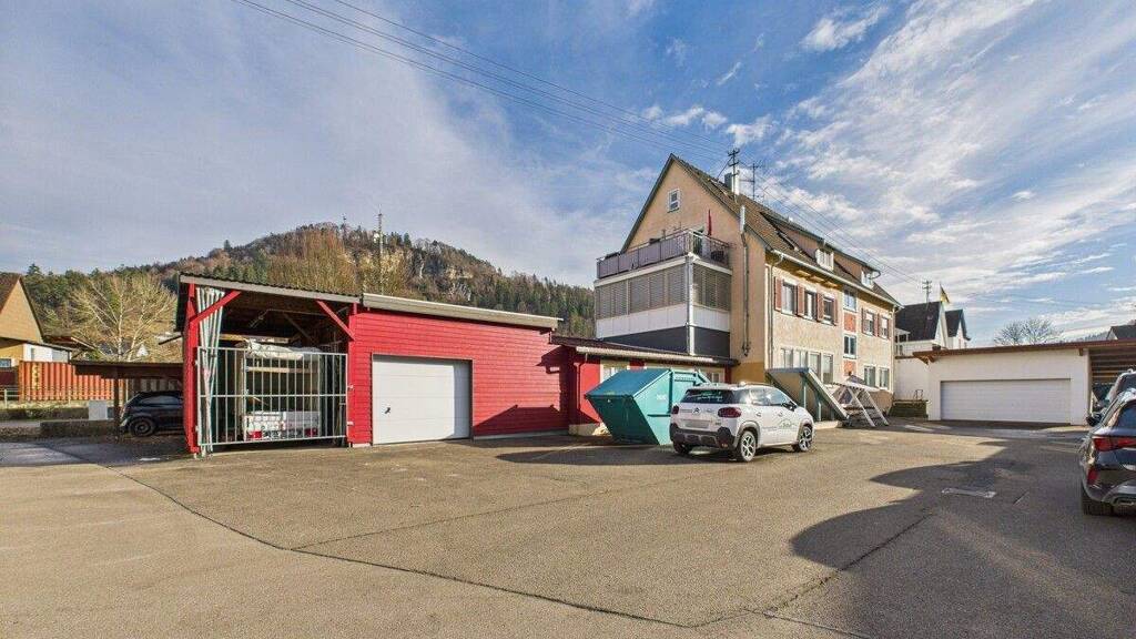 Zusätzlich stehen zwei Garagen sowie ein Carport zur Verfügung, wodurch ausreichend Stell- und Abstellflächen für Fahrzeuge, Maschinen oder Material gegeben sind.