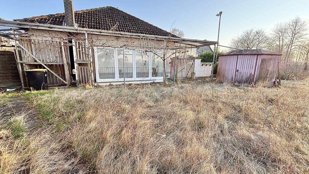 Dieser Bungalow in Fertigbauweise (OKAL-Haus) befindet sich auf einem großzügigen 813 m² großen Grundstück und bietet vielfältige Möglichkeiten für Familien, Visionäre oder Bauherren mit eigenen Ideen. Die Immobilie präsentiert sich in einem Zustand, der eine umfassende Sanierung oder einen Neubau nahelegt - somit eröffnet sich hier die Chance, ein ganz individuelles Zuhause nach eigenen Vorstellungen zu realisieren.