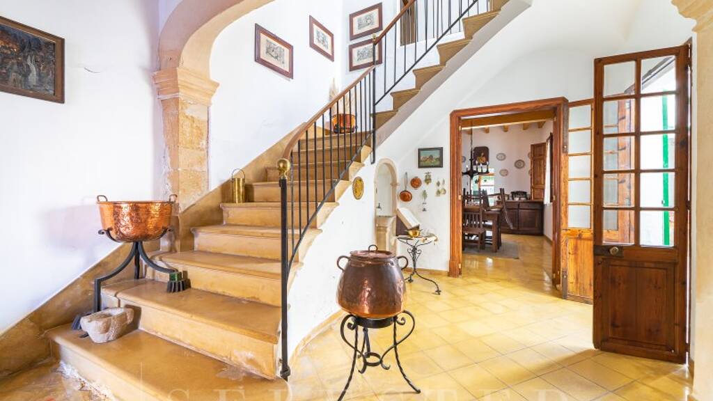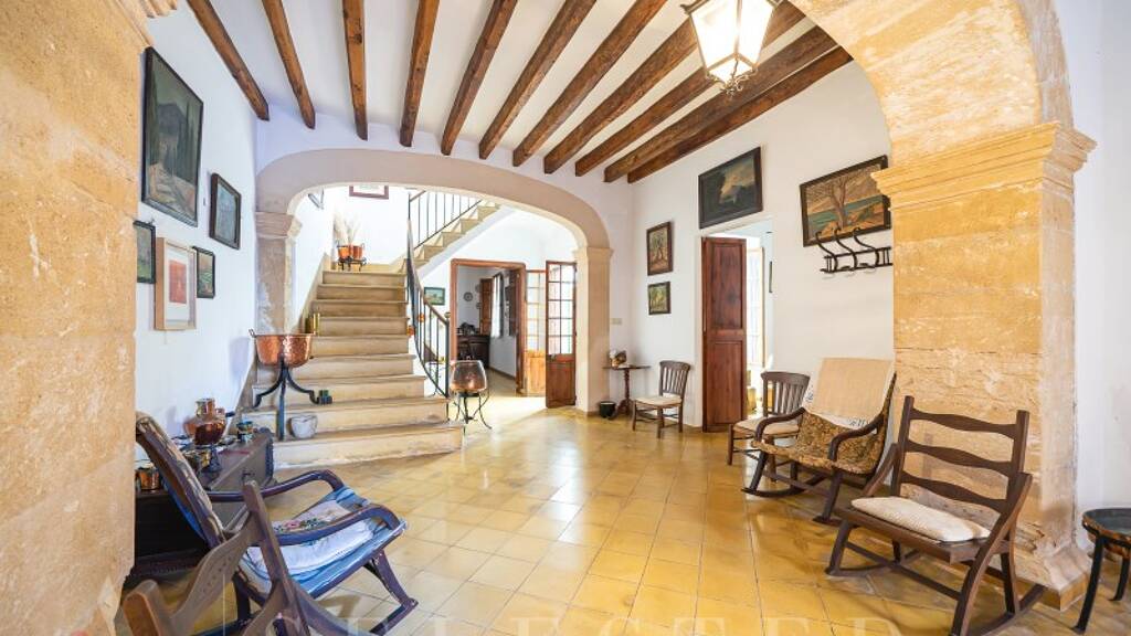 Mit einer bebauten Fläche von ca. 525 m² auf einem 262 m² großen Grundstück bietet die Immobilie derzeit acht Schlafzimmer, mit der Möglichkeit, durch Renovierung bis zu zehn zu schaffen. Es gibt zwei Badezimmer, eine Küche und mehrere Wohnräume mit charakteristischen Marés-Bögen, die den ursprünglichen Charme bewahren.