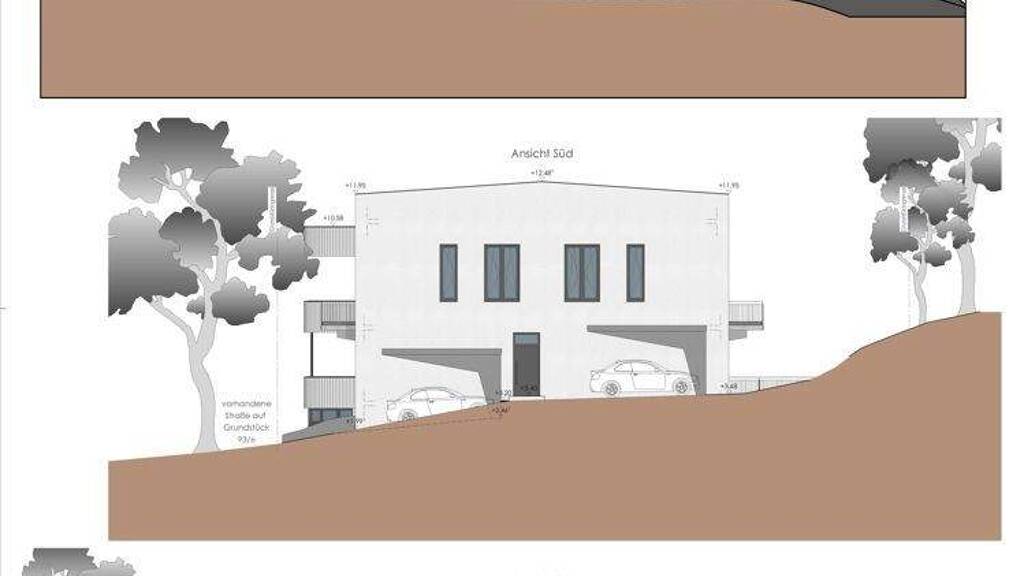 Von der Straße zurückgesetzt und leicht erhöht mit freiem Blick unter anderem zum Hausberg und ins Grüne.