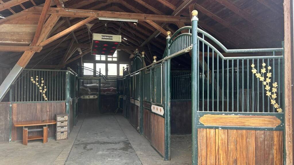 Für Pferdeliebhaber bietet das Anwesen eine umfassende Infrastruktur: Ein Stall mit 8 Boxen, Solarium sowie beheizter Wasserleitung sorgen für optimale Bedingungen. Die Reithalle wurde aus massiven Leimbindern errichtet und ist mit einem hochwertigen ProGridboden samt Sandvlies ausgestattet. Auf dem Dach der Halle befindet sich eine 24,6 kWp Photovoltaikanlage zur nachhaltigen Energiegewinnung. Zusätzlich steht ein drainagiertes Paddock in unmittelbarer Nähe zur Terrasse zur Verfügung. Eine großzügige Werkstatt mit Lagerflächen rundet das Angebot funktional ab.