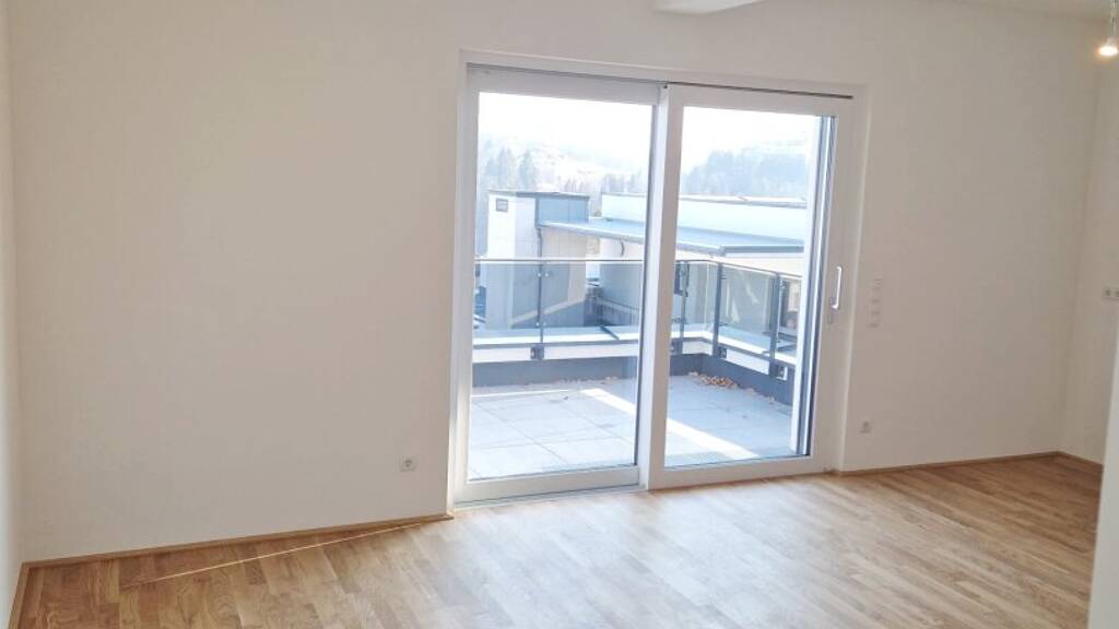 Raumaufteilung: + Wohnraum mit offener Küche (es sind nur die Anschlüsse vorhanden) und Zugang auf die Terrasse + 2 Zimmer + Bad mit Dusche, Waschmaschinenanschluss und Fenster + separate Toilette mit Handwaschbecken + Abstellraum + Vorraum + Terrasse (ca. 33 m²)