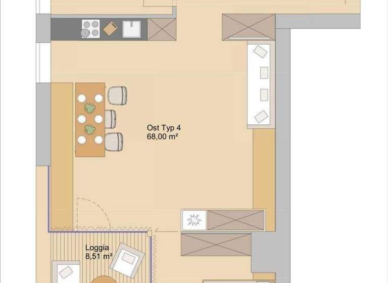 Wohnfläche: 68,00 m², Nutzfläche: 76,50 m², Anzahl der Badezimmer: 1, Anzahl der separaten WCs: 1, Anzahl Loggias: 1, Wohnungsnr.: Gloriette Suite