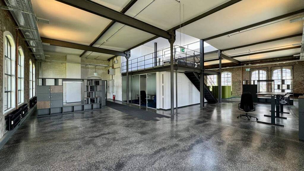 Im Inneren erwarten Sie großzügige, lichtdurchflutete Räume mit hohen Decken, sichtbaren Tragwerkselementen und flexiblen Grundrissmöglichkeiten, die eine individuelle Gestaltung ermöglichen. Die Flächen überzeugen durch ihren offenen Loftstil, der ausreichend Raum für kreative Prozesse, moderne Bürokonzepte und agile Teams bietet.