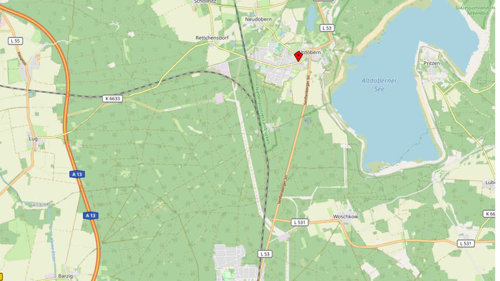 Die Immobilie befindet sich in zentraler und gewachsener Lage der Gemeinde Altdöbern im südlichen Brandenburg. Der Ort verbindet ruhiges Wohnen mit einer guten Grundversorgung und einer soliden regionalen Anbindung. Die Anbindung an den öffentlichen Personennahverkehr ist fußläufig gegeben. Busverbindungen stellen regelmäßige Verbindungen innerhalb der Region sowie zu umliegenden Städten wie Calau und Senftenberg her. Über diese Orte besteht auch Anschluss an den regionalen Bahnverkehr. Die Autobahn A13 (Berlin-Dresden) ist in kurzer Fahrzeit erreichbar und ermöglicht eine zügige Verbindung in Richtung Berlin, Dresden und Cottbus. Einkaufsmöglichkeiten für den täglichen Bedarf wie Supermärkte, Bäcker, Apotheken und weitere Dienstleister befinden sich im Ort und in der näheren Umgebung. Ergänzende Angebote, größere Einkaufszentren sowie Fachmärkte sind in den umliegenden Städten gut erreichbar. Für Freizeit und Erholung bietet Altdöbern ein attraktives Umfeld. Der Schlosspark, der Altdöberner See sowie Rad- und Wanderwege in der Niederlausitzer Landschaft laden zu vielfältigen Freizeitaktivitäten ein. Sportvereine, kulturelle Angebote und Gastronomie runden das Freizeitangebot ab. Die medizinische Versorgung ist durch Arztpraxen vor Ort sowie durch nahegelegene Krankenhäuser in Calau und Senftenberg gewährleistet. Familien profitieren von kurzen Wegen zu Bildungs- und Betreuungseinrichtungen. Kindergarten und Grundschule befinden sich im Ort, weiterführende Schulen sind in den umliegenden Städten gut erreichbar und durch den ÖPNV angebunden. Insgesamt zeichnet sich die Lage durch eine ausgewogene Kombination aus ruhigem Wohnumfeld, guter Infrastruktur und verkehrsgünstiger Anbindung aus.