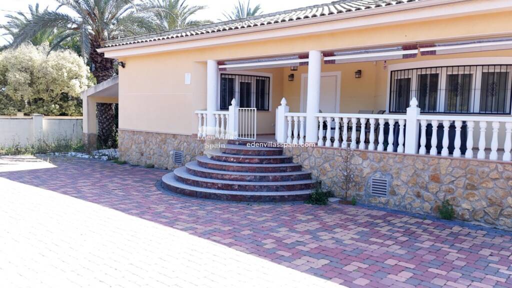 Diese wunderschöne Villa mit 3 Schlafzimmern und 2 Bädern besticht durch einen spektakulären Garten, privaten Pool und reizvolle Ausblicke aufs Land. Die Immobilie wird praktisch möbliert verkauft und liegt 2 km von Catral entfernt, 15 Autominuten von den Stränden von La Marina und 20 Autominuten von den Stränden von Guardamar del Segura entfernt. Das Haus von 235 m² verfügt über ein großes Wohnzimmer mit Kamin und Essbereich, 3 Schlafzimmer mit Einbauschränken, 2 Bäder (eines davon en-suite), eine offene Küche mit Waschraum und Hintertor, sowie eine Terrasse mit schönen Ausblicken. Es gibt einen überdachten Stellplatz. Das 2400 m² große Grundstück ist vollständig eingezäunt für mehr Privatsphäre und verfügt über einen hübschen, pflegeleichten Garten mit großzügigen Terrassen und einer Betonhof. Der Garten umfasst eine Laube, Pergolen und eine Quelle. Auf dem Grundstück befindet sich ein 10 m x 5 m großer Pool mit großzügiger Sonnenterrasse, Geländer und Dusche. Weitere Merkmale sind Stromanschluss, Wassertank, Klimaanlage (kühl/heiß), Terrasse mit Markisen, Glasfas internet mit WLAN, automatisches Tor, Hundekäfig, Deckenventilatoren, Außenbeleuchtung auf dem Grundstück... Die Immobilie liegt nur 2 km von Catral entfernt. Catral bietet alles Nötige für den Alltag: zahlreiche Geschäfte, verschiedene Supermärkte, Restaurants, Bars/Cafés, Metzgereien, Medizin- und Sportzentrum, überdachter Markt, Schulen, Tierärzte, Zoohandlungen, Friseure, Baumärkte, Apotheken, Banken, Autobahn... und 15 Autominuten von den Stränden von La Marina (Strand El Pinet), 20 Autominuten von Guardamar del Segura und 30 Autominuten vom internationalen Flughafen Alicante-Elche.