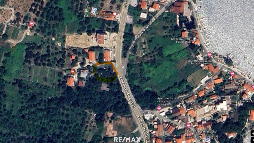 Das Grundstück befindet sich in Mali Zaton nur wenige Gehminuten vom wunderbaren Strand entfernt. Am Grundstück stehen ein Wohnwagen und ein Container.