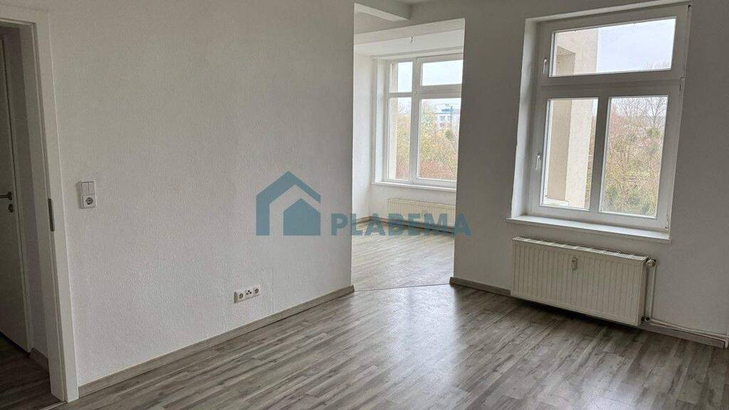 Die hier angebotene Wohnung ist aufgeteilt in zwei Schlafzimmer, ein Bad, ein großes Wohnzimmer mit Zugang zur offenen Küche und Erker.
