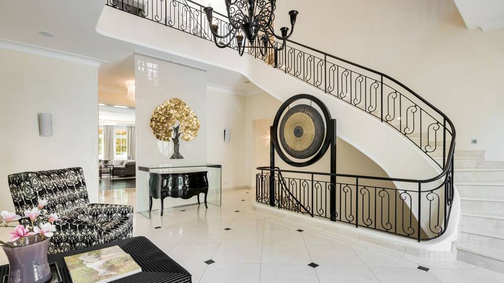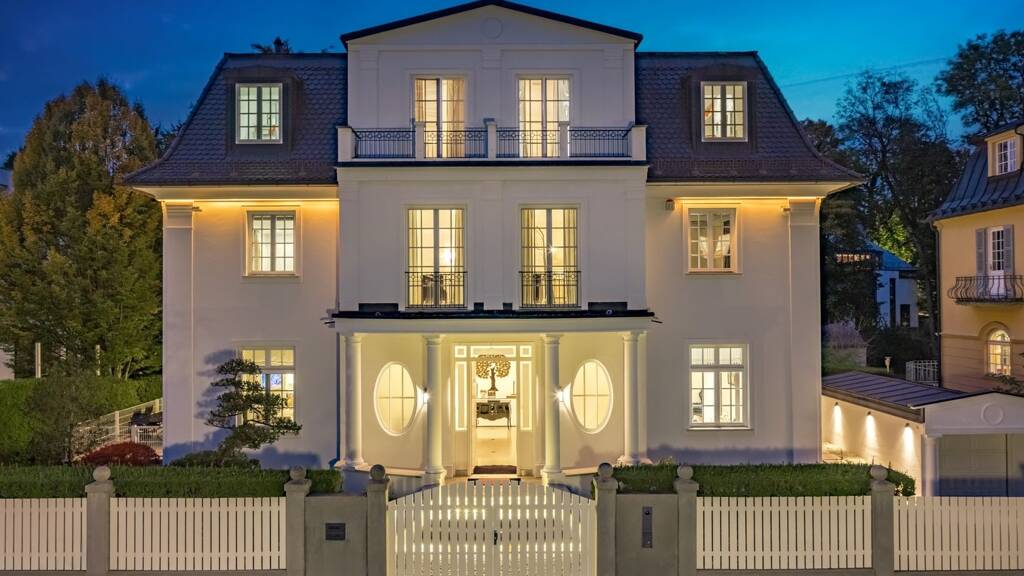Moderne Technik, darunter ein KNX-System, eine Soundanlage, ein umfassendes Sicherheitskonzept sowie teilweise klimatisierte Räume, sorgen für zeitgemäßen Wohnkomfort. Die Immobilie befindet sich im Erbbaurecht; der Vertrag läuft bis September 2078.