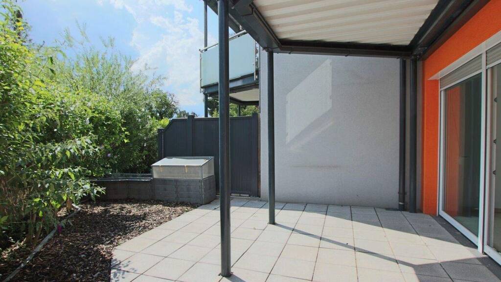 Die Wohnung überzeugt durch einen lichtdurchfluteten Wohnbereich mit offener, moderner Einbauküche und direktem Zugang zur Garten-Terrasse. Das Schlafzimmer verfügt ebenfalls über einen Ausgang ins Freie. Das Badezimmer ist mit einer Badewanne ausgestattet, die Toilette befindet sich separat. Ein praktischer Abstellraum sorgt für zusätzlichen Stauraum.