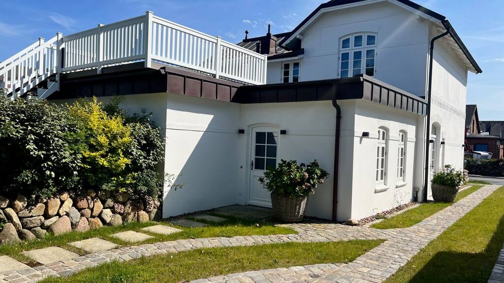 Die architektonisch ansprechende Immobilie im Bäder-Stil aus den 1920er Jahren präsentiert sich stolz auf einem großzügigen Grundstück mit liebevoll angelegten Außenanlagen, die eine idyllische Umgebung bieten. Hier können Sie die Natur in vollen Zügen genießen und entspannte Stunden im Freien verbringen. Das Anwesen ist von einer Friesenmauer umgeben, die Ruhe und Privatsphäre gewährleistet und in nur wenigen Minuten zu Fuß erreichen Sie direkt den feinsandigen Weststrand.
