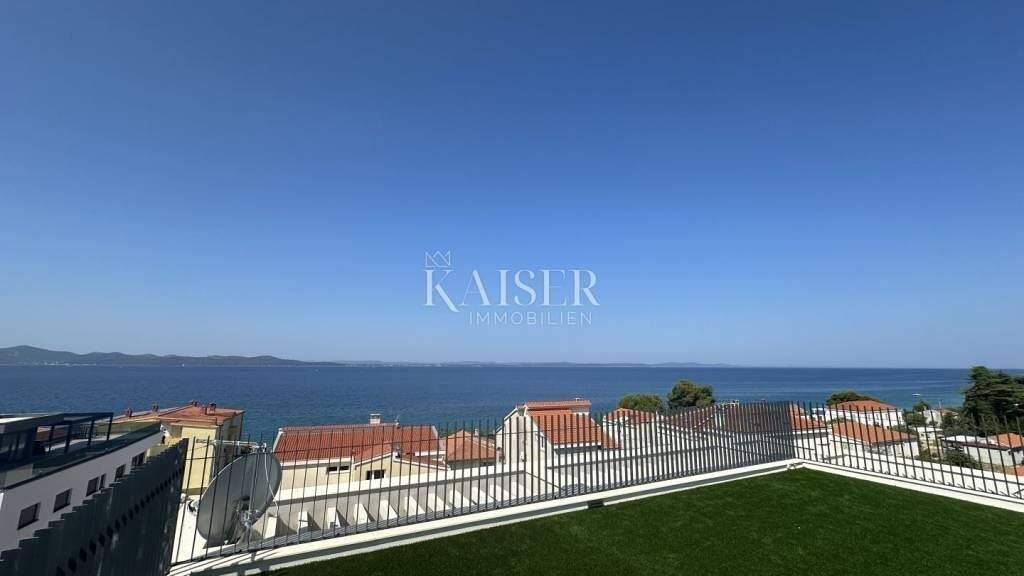 Kaiser Immobilien präsentiert eine exklusive Penthouse-Wohnung in einem modernen Gebäude in Kozino, nur 90 Meter vom Meer entfernt. Die beeindruckende 101 m² große Dachterrasse bietet einen Panoramablick auf das Meer und den Zadar-Archipel. Diese einzigartige Immobilie vereint Luxus, Privatsphäre und eine außergewöhnliche Lage. Kozino ist ein ruhiges und attraktives Dorf, nur zehn Autominuten von Zadar entfernt, bekannt für seine unberührte Natur, das kristallklare Meer und die gepflegten Strände. Diese Immobilie bietet die perfekte Kombination aus Luxus, Privatsphäre und erstklassiger Lage - ideal für Familien, Urlaub oder als Investition zur touristischen Vermietung. Die Wohnung erstreckt sich über 124 m² Wohnfläche und besteht aus einem geräumigen Wohnzimmer mit Küche und Esszimmer, drei Schlafzimmern (das Hauptschlafzimmer verfügt über ein eigenes Bad und einen begehbaren Kleiderschrank) und einem weiteren Badezimmer. Vom Wohnzimmer aus gelangt man auf einen Balkon, und eine Innentreppe führt auf eine private Dachterrasse mit Whirlpool, die ideal zum Sonnenbaden, geselligen Beisammensein, Entspannen und für den Einbau einer Außenküche ist. Der Grundriss mit Aufteilung und Flächen ist den Bildern beigefügt. Zur Wohnung gehören außerdem ein Abstellraum im Keller des Gebäudes sowie zwei private Parkplätze. Die Wohnung wurde mit hochwertigen Materialien gebaut und für maximalen Komfort ausgestattet - Thermofassade, Fußbodenheizung in Badezimmern und Wohnzimmer, Klimaanlage in allen Zimmern, hochwertige Außenschreinereiarbeiten mit Dreifachglas, elektrische Rollläden und eingebaute Moskitonetze. Diese Immobilie ist eine großartige Gelegenheit für alle, die eine geräumige Wohnung mit schöner Aussicht in unmittelbarer Nähe zum Meer suchen. Die Maklerprovision für den Käufer beträgt 3 % zzgl. MwSt. und wird im Falle des Kaufs der Immobilie nach Abschluss des ersten Rechtsgeschäfts fällig. Kontaktieren Sie uns vertrauensvoll für weitere Informationen und um einen Besichtigungstermin zu vereinbaren. Tel.: +385915404646 E-Mail: vedran@kaiser-immobilien.hr
