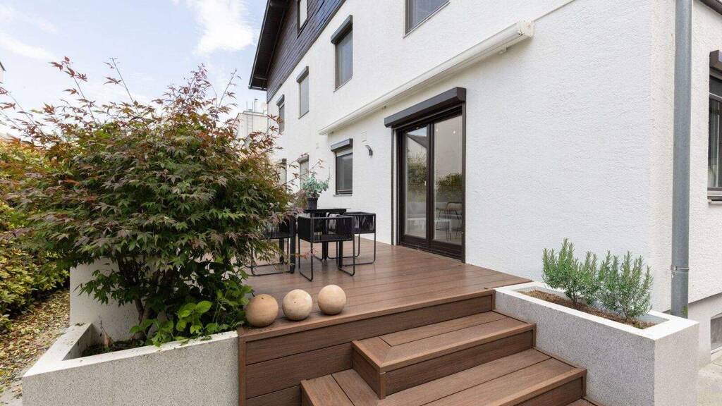 Die Terrasse ist aufgrund Ihrer Beschaffenheit sehr pflegeleicht, viel Grün und das Mühlwasser vor der eigenen Haustüre ersetzen den Garten und machen vor allem keine zusätzliche Arbeit.