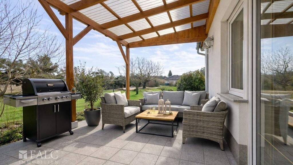 Auch der Außenbereich lässt keine Wünsche offen: Die Immobilie verfügt über eine große Hofeinfahrt, ein großes Carport sowie eine angrenzende Garage mit ca. 45 m² Fläche, die erst 2023 gebaut wurde. Viel Platz für Fahrzeuge, eine Werkstatt und zusätzlicher Stauraum. Zur kostensparenden Bewässerung steht Ihnen ein eigener Brunnen zur Verfügung.