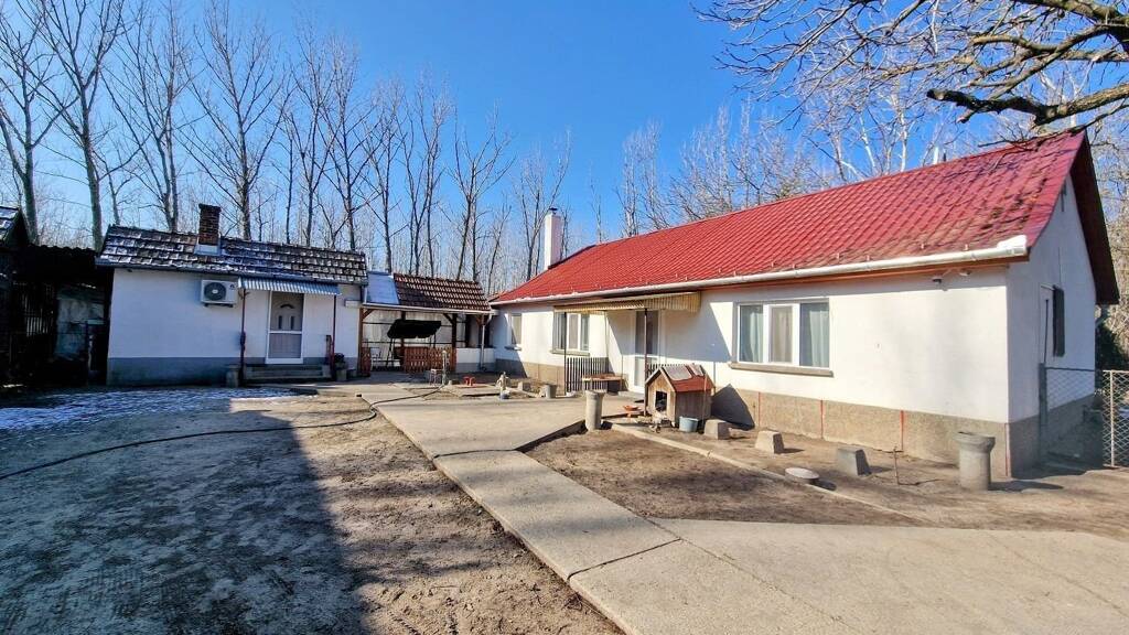 Das Grundstück ist teils eingezäunt (ca.2 600m2). Das Haus wurde mit Lehm (55 cm) gebaut. Im Jahr 2019 wurde die Holzzentralheizung mit Heizkörpern installiert, im Jahr 2017 wurde die neue Kunststofffenster mit Doppelverglasung und Moskitonetz eingebaut und auch das Dach im Jahr 2021 renoviert. Wohnhaus 68 m2: Diele, 3 Zimmer, Bad mit Wanne und Dusche und Toilette, 1 Speisekammer. Nebengebäude 33 m2: 1 Heizraum, 1 Dachterrasse, 1 Küche und 1 Speisekammer. Auf dem Grundstück steht noch 1 Doppelgarage, Abstellräume, Werkstatt und mehrere Gebäude mit Holz. 2 Klimaanlagen mit Heizen und Kühlen – 3,5 Kw. Kamerasystem und Internet vorhanden. Wasserversorgung mit Brunnen (3 Stücke). Stromversorgung 230V / 1 x 32 Amper. Abwasser – Sickergrube. Viele Obstbäume. Die beiden Grundstücke verfügen über eine Gesamtfläche von 14.476 m2, welche von zwei Personen erworben werden können. Sie können diese Immobilie nur in HUF kaufen. Verkaufpreis in HUF: 21,9 Million Huf.