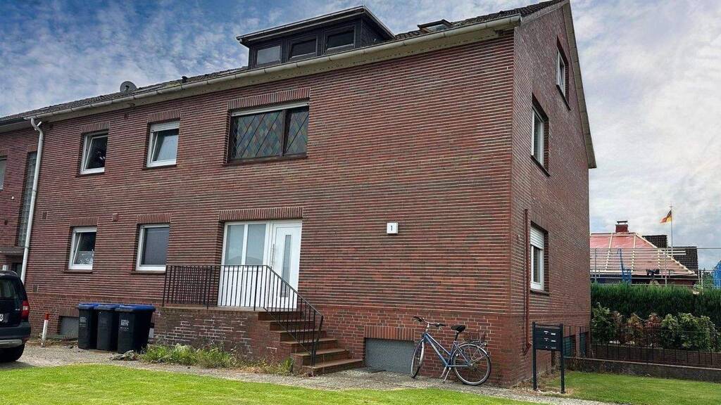 Diese gepflegte 4-Zimmer-Wohnung befindet sich im Erdgeschoss und bietet Ihnen ca. 120 m² Wohnfläche. Die Fenster sind mit AuĂźenrollläden versehen. Zu der Wohnung gehören ein belĂĽfteter Kellerraum, ein gemeinschaftlicher Trockenraum mit Waschmaschinenanschluss und ein Stellplatz, der fĂĽr 30,00 € monatlich angemietet wird.