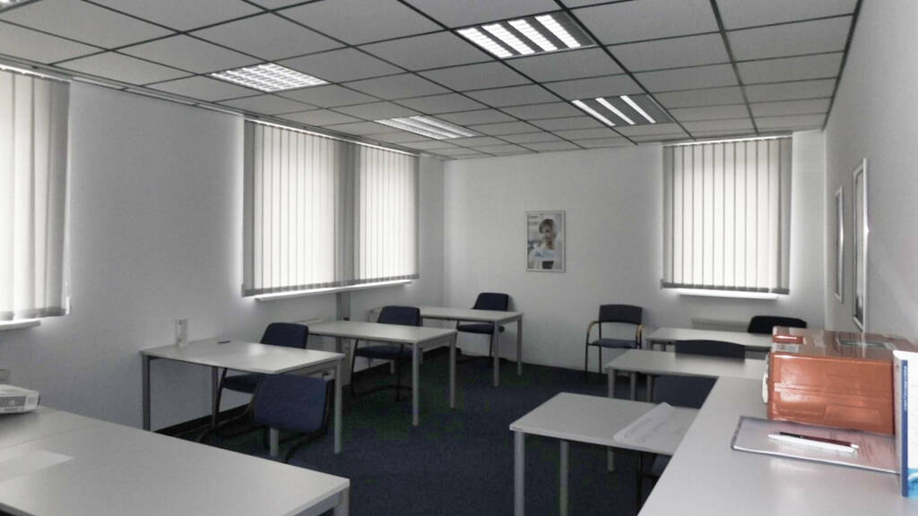 Das Wohnungseigentums-Objekt befindet sich im Erdgeschoss und im 1. Obergeschoss einer viergeschossigen Wohnhausanlage mit straßenseitiger Ausrichtung. Die Gesamtfläche beläuft sich auf 191,50 m². Im Erdgeschoss befinden sich das Kundenbüro, ein Besprechungsraum und Sanitäranlagen. Im Obergeschoss befindet sich ein großer Besprechungsraum (Schulungsraum), vier weitere Einzelbüros, eine Teeküche und Sanitäranlagen. Die Büroeinheiten werden von einer namhaften und bonitätsstarken Mieterin als Geschäftsstelle genutzt.