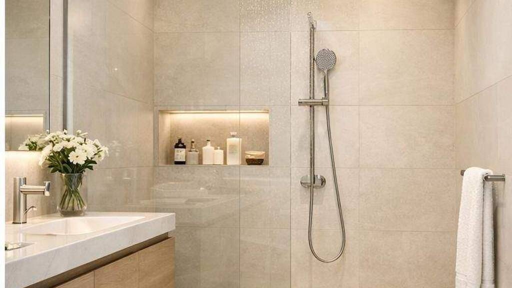 Die Bäder werden mit modernen Sanitärobjekten ausgestattet, darunter bodengleiche Duschen mit Glasabtrennungen, formschöne Waschbecken und moderne Armaturen.