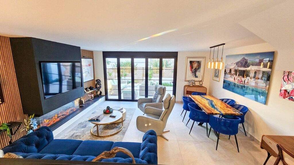 Der Innenbereich wird Sie vom ersten Moment an verzaubern: wunderschöne Fliesenböden, luxuriöse Badezimmer, eine brandneue Küche mit Kochinsel, modernen Geräten und einem clever gestalteten Bereich zum Kochen und Beisammensein. Das offene Wohnzimmer öffnet sich vollständig zur Hauptterrasse und schafft so eine lichtdurchflutete Verbindung zwischen Innen und Außen. Im ersten Stock befinden sich zwei Schlafzimmer mit gemeinsamem Bad und eines mit eigenem Bad, während die Master-Suite im Obergeschoss über ein eigenes Ankleidezimmer, ein Badezimmer und Zugang zu einer Dachterrasse mit Panoramablick auf das Meer verfügt.