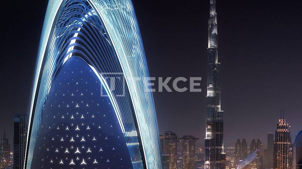 Die Wohnungen befinden sich in dem neuen ikonischen Gebäude in Dubai, dem weltweit ersten und einzigen Wohnturm der Marke Mercedes-Benz. Der Turm ist 341 Meter hoch und hat 65 Stockwerke mit insgesamt 150 Wohnungen. Die Wohnungen werden in verschiedenen Modellen angeboten, darunter 2- und 3-Schlafzimmer-Suiten sowie 4- und 5-Schlafzimmer-Penthouses. Eines der wichtigsten Merkmale dieses exklusiven Projekts ist, dass jede Wohnung eine Deckenhöhe von 4,2 Metern hat und einen Blick auf den Burj Khalifa und die herrliche Skyline von Dubai bietet.