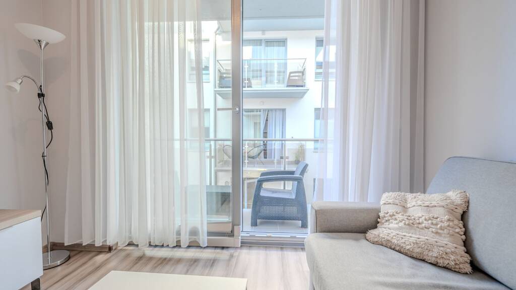 Das Apartment befindet sich in ausgezeichneter Lage – nur 150 Meter vom nächsten Zugang zum Strand entfernt. In der Umgebung warten malerische Radwege, die durch Wälder und Klippen führen und zu Spaziergängen, Joggen oder Radtouren einladen. Der Weststrand, umgeben von Kiefernwald, ist der perfekte Ort für Entspannung für die ganze Familie, und die frische, salzige Luft sorgt für eine außergewöhnliche Urlaubsatmosphäre.