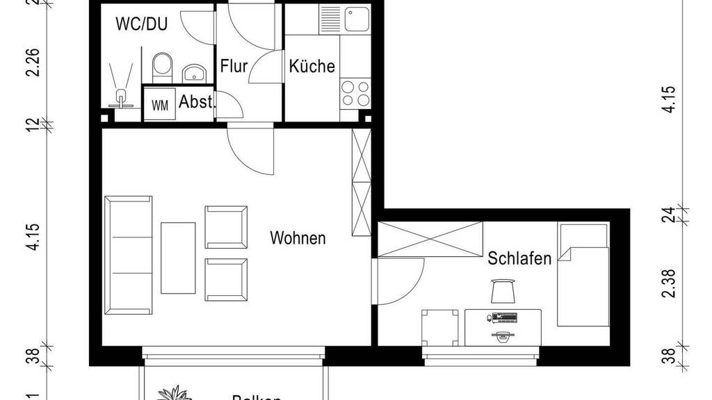 Auf einer Wohnfläche von ca. 45,31 m² bietet die Wohnung einen durchdachten Grundriss, der sich ideal für Singles oder Paare eignet. Das helle Wohnzimmer bildet den zentralen Mittelpunkt der Wohnung und schafft mit seinem großzügigen Lichteinfall eine freundliche Atmosphäre. Das Schlafzimmer bietet einen ruhigen Rückzugsort und sorgt für erholsame Nächte.