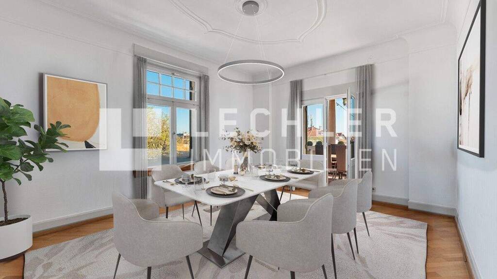 Dieses architektonische Juwel befindet sich auf der Gänsheide - einer der exklusivsten und gefragtesten Wohnlagen der Stadt. In unmittelbarer Nachbarschaft zur Villa Reitzenstein, dem Sitz des Staatsministeriums, kombiniert sie historische Eleganz mit modernem Komfort auf höchstem Niveau.
