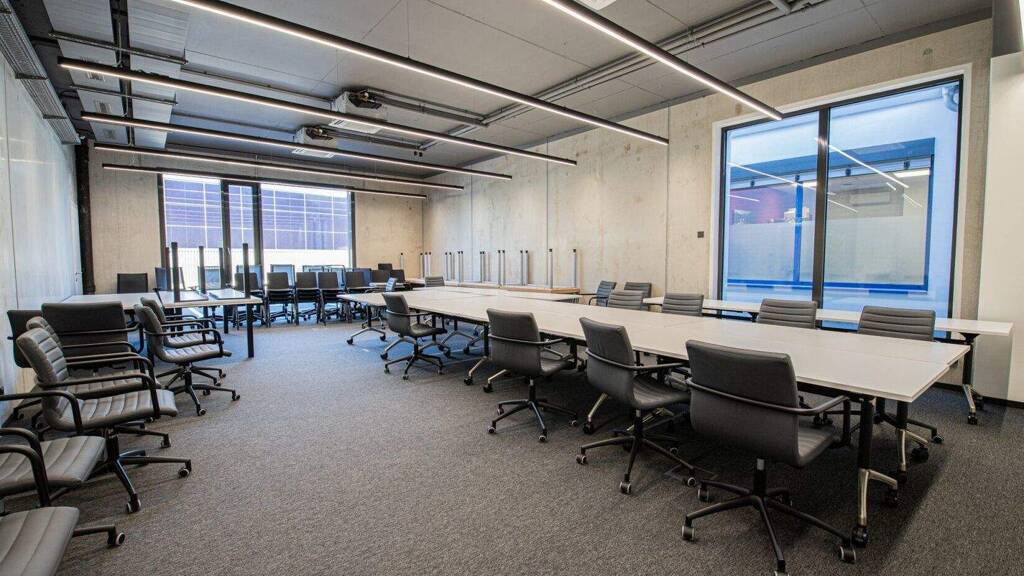Der hochwertig ausgestattete Veranstaltungsraum mit modernster Medientechnik eignet sich ideal für Workshops, Präsentationen und Networking-Events. Dank modularer Möblierung und barrierefreiem Zugang lässt sich der Raum flexibel an unterschiedliche Nutzungskonzepte anpassen.