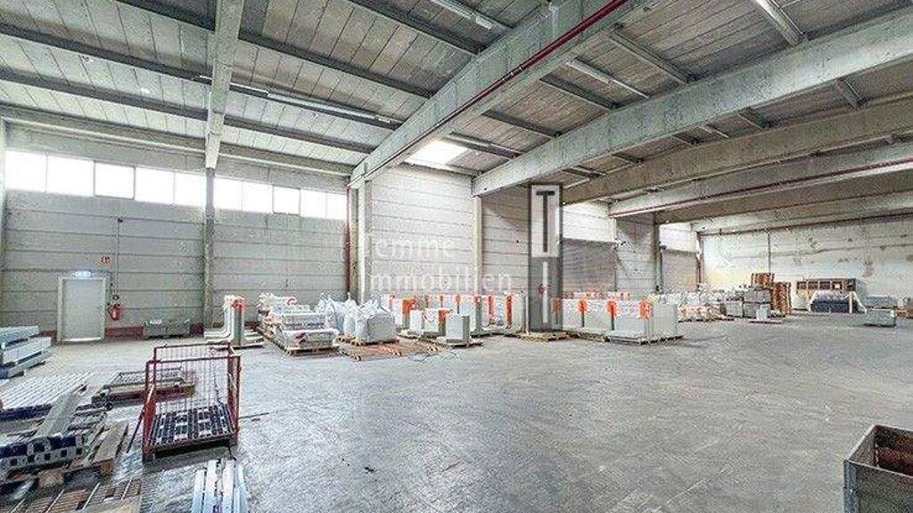 - Kalthalle - stützen- und säulenfrei - Starkstromanschluss - Bodentraglast: 5 t/m² - Hallenhöhe: ca. 6,10 m - Rampenanlieferung über 2 Rolltore H 4,10 m x B 4,95 m - gemeinschaftliche ebenerdige Anlieferung auf Wunsch möglich - natürliche Belichtung über Lichtbänder und Lichtkuppel