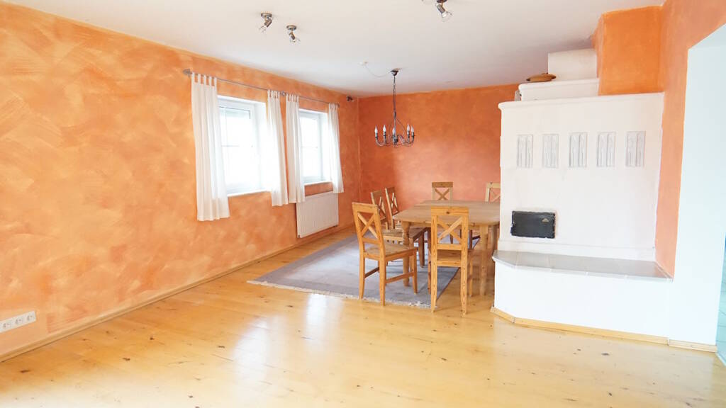 Dieses charmante Wohnhaus verbindet ländlichen Flair mit modernem Wohnkomfort und bietet jungen Familien viel Platz für alle Lebensbereiche. Das 1994 ab Keller wiederaufgebaute Haus besticht durch helles, lichtdurchflutetes Wohnen mit einem zentralen Kachelofen im großzügigen Wohn- und Esszimmer - ideal für gemütliche Abende und gesellige Stunden.