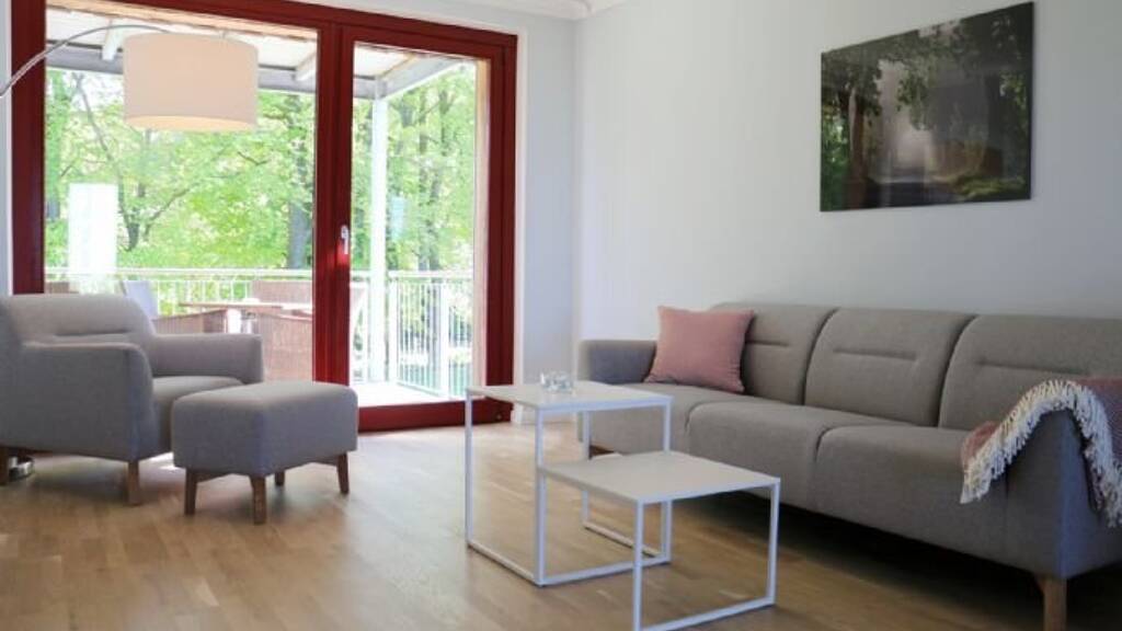Diese attraktive 3-Raumwohnung befindet sich in der Hochparterre des Hauses und bietet Ihnen auf ca. 82 m² ein rundum komfortables Wohnambiente. Zwei sonnige Balkone in begehrter Südwestlage – einer davon mit Meerblick – erweitern den Wohnraum und laden zu entspannten Stunden im Freien ein.Das moderne, lichtdurchflutete Appartement empfängt Sie mit einer stilvollen Ausstattung: hochwertige Markenmöbel von BoConcept und Porta, individuelle Tischlereinbauten sowie ein einladender Wohnbereich mit Zugang zum Balkon schaffen eine Atmosphäre zum Wohlfühlen. Die großzügige Wohnküche ist mit einer zeitgemäßen Küchenzeile ausgestattet – Cerankochfeld, Kühlschrank, Geschirrspüler und reichlich Stauraum sorgen für höchsten Komfort. Ein zusätzlicher Steh- und Arbeitsplatz ergänzt die Einrichtung auf praktische Weise.Die Wohnung verfügt über zwei gemütliche Schlafzimmer:– Das erste Zimmer ist mit einem komfortablen Doppelbett und einem geräumigen Kleiderschrank ausgestattet.– Das zweite Schlafzimmer bietet zwei Einzelbetten, TV, Kleiderschrank sowie Verdunklungsstoffe für eine ruhige und erholsame Nachtruhe.Das helle Tageslichtbad überzeugt mit einer großzügigen Dusche, zwei Waschbecken, Bidet, WC und einem großen Wandspiegel. Zusätzlich sorgt ein wohnungseigener Abstellraum für wertvollen Stauraum. Ein PKW-Stellplatz direkt am Haus rundet das Angebot ab.
